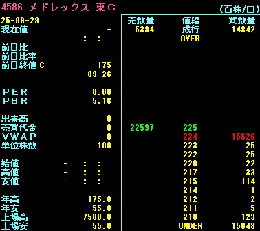 4586 メドレ @160円 30万株→ナリ爆190円 900万チャリン