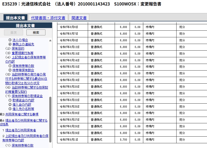 2025.9.17 場内処分 3.77万株 8.25日~9.1日まで